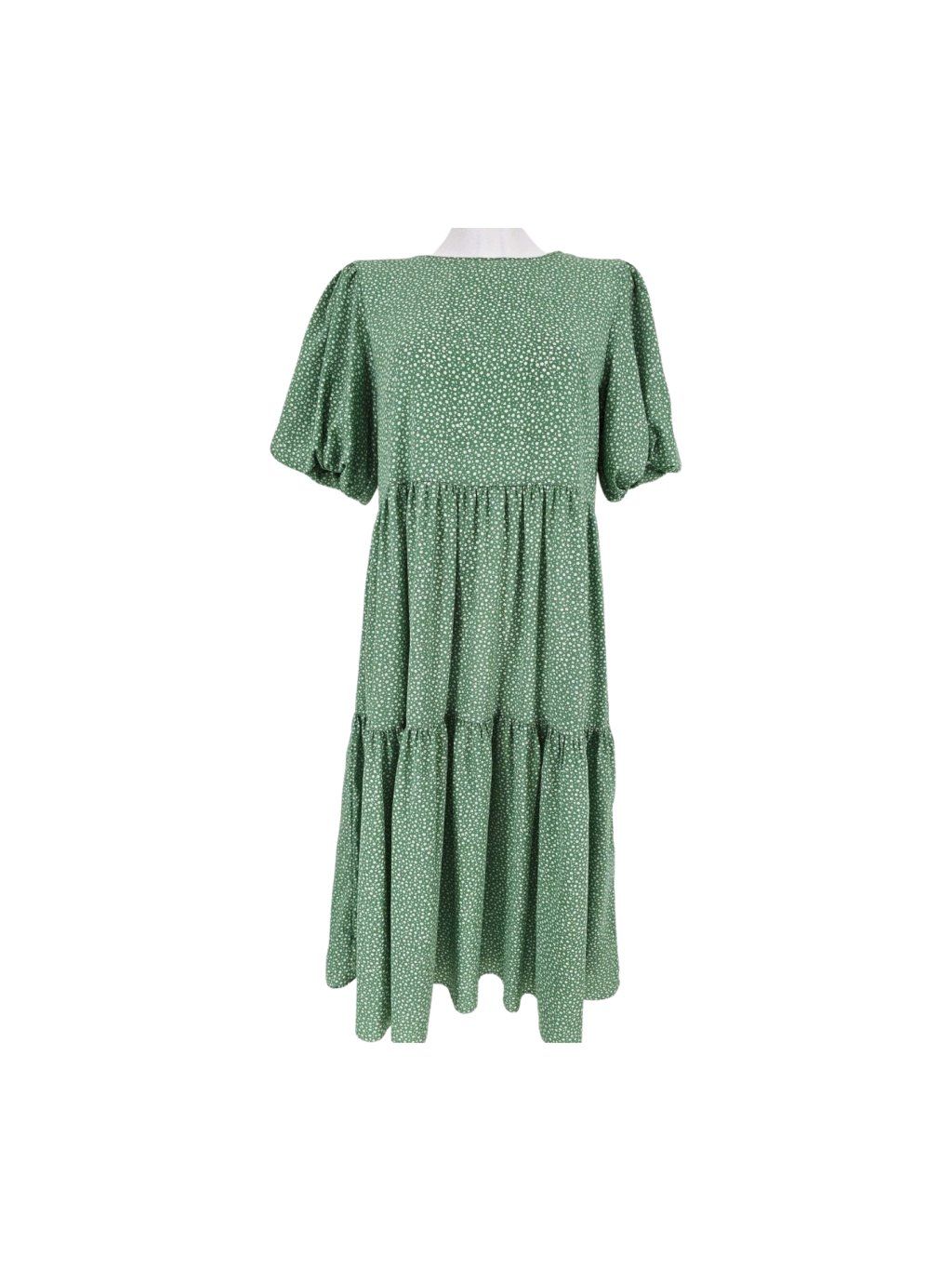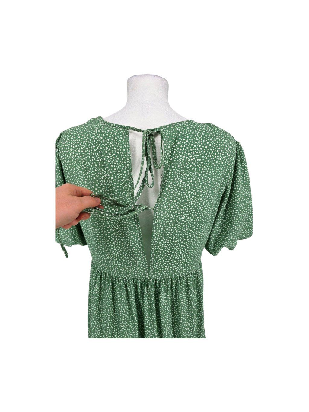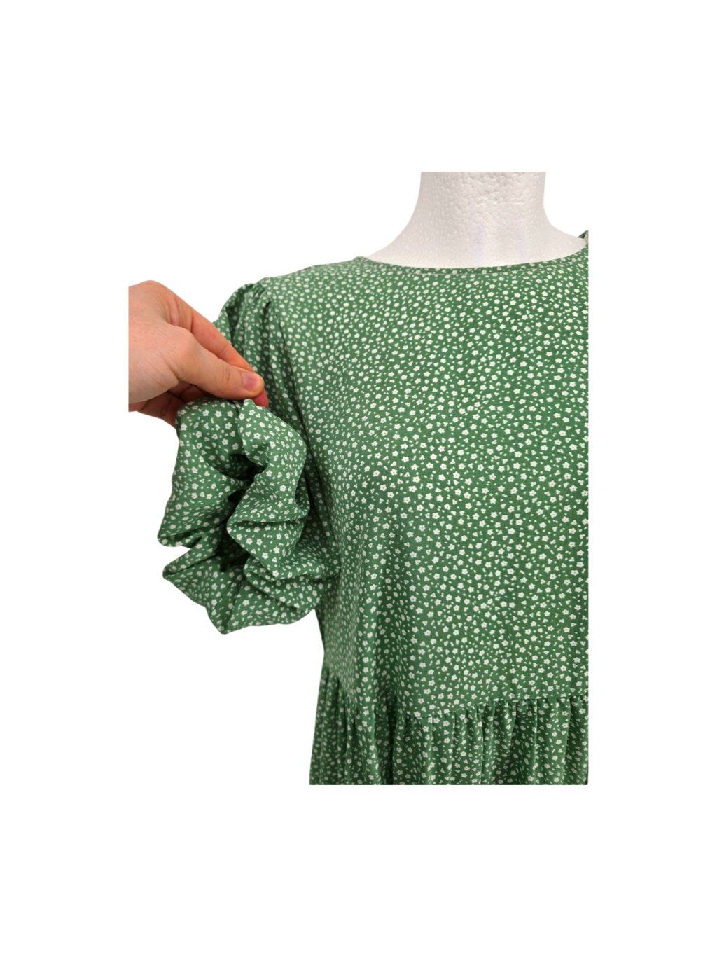 vel. UK 10 EUR 38 - pěkné nemačkavé šaty v jemné zelené barvě s bílými květy