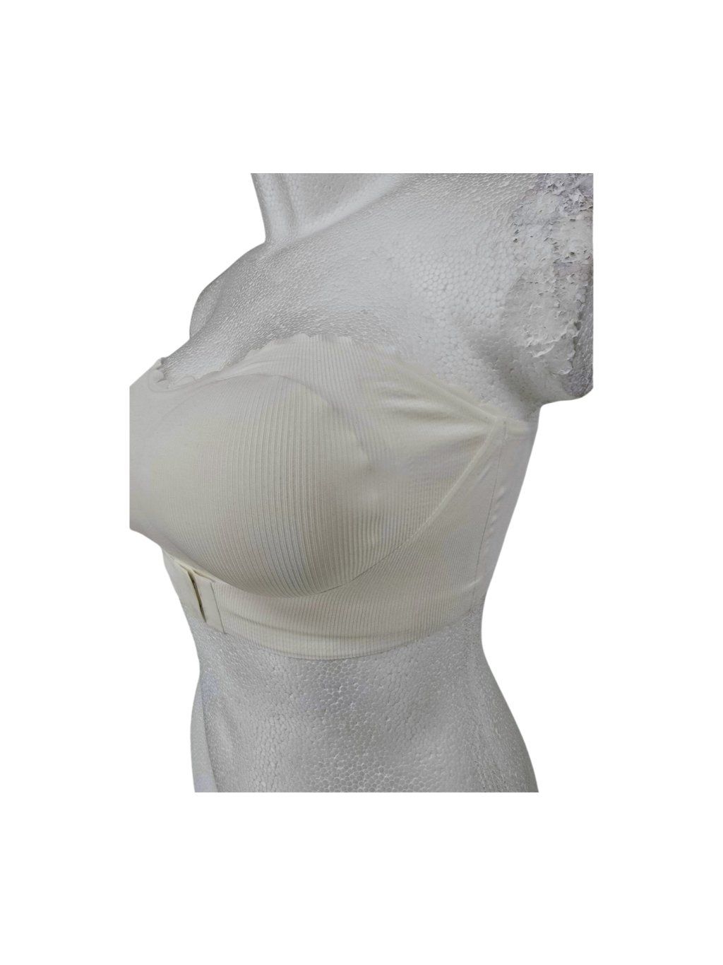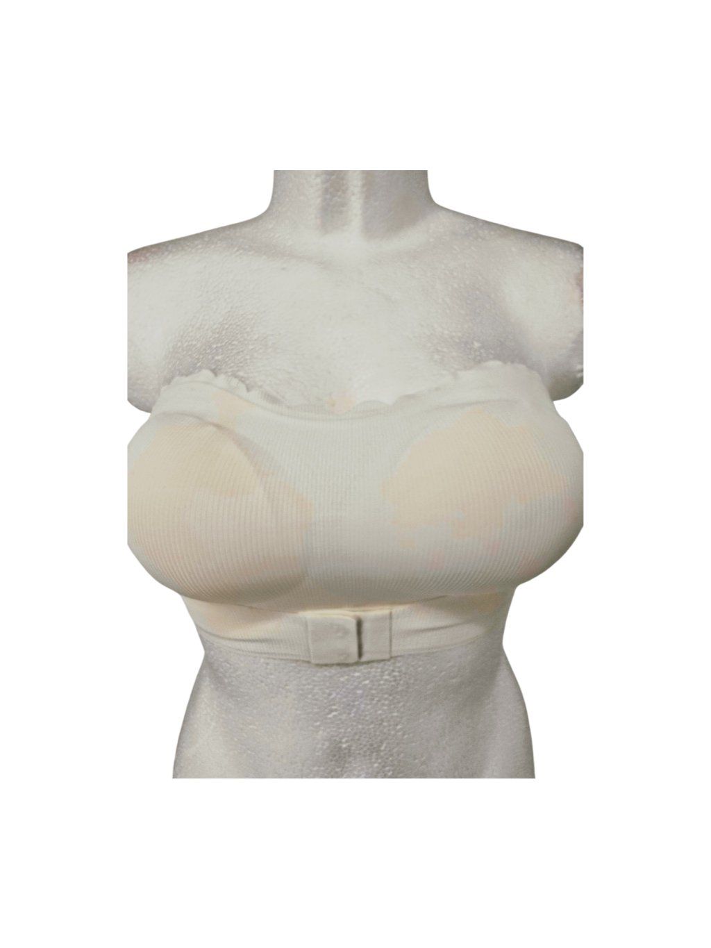 vel. psaná XL , ale spíše 40/42 - spíše na menší poprsí , vycpávky jdou vyndat , příemný pružný materiál , nad prsy silikonový proužek aby to drželo