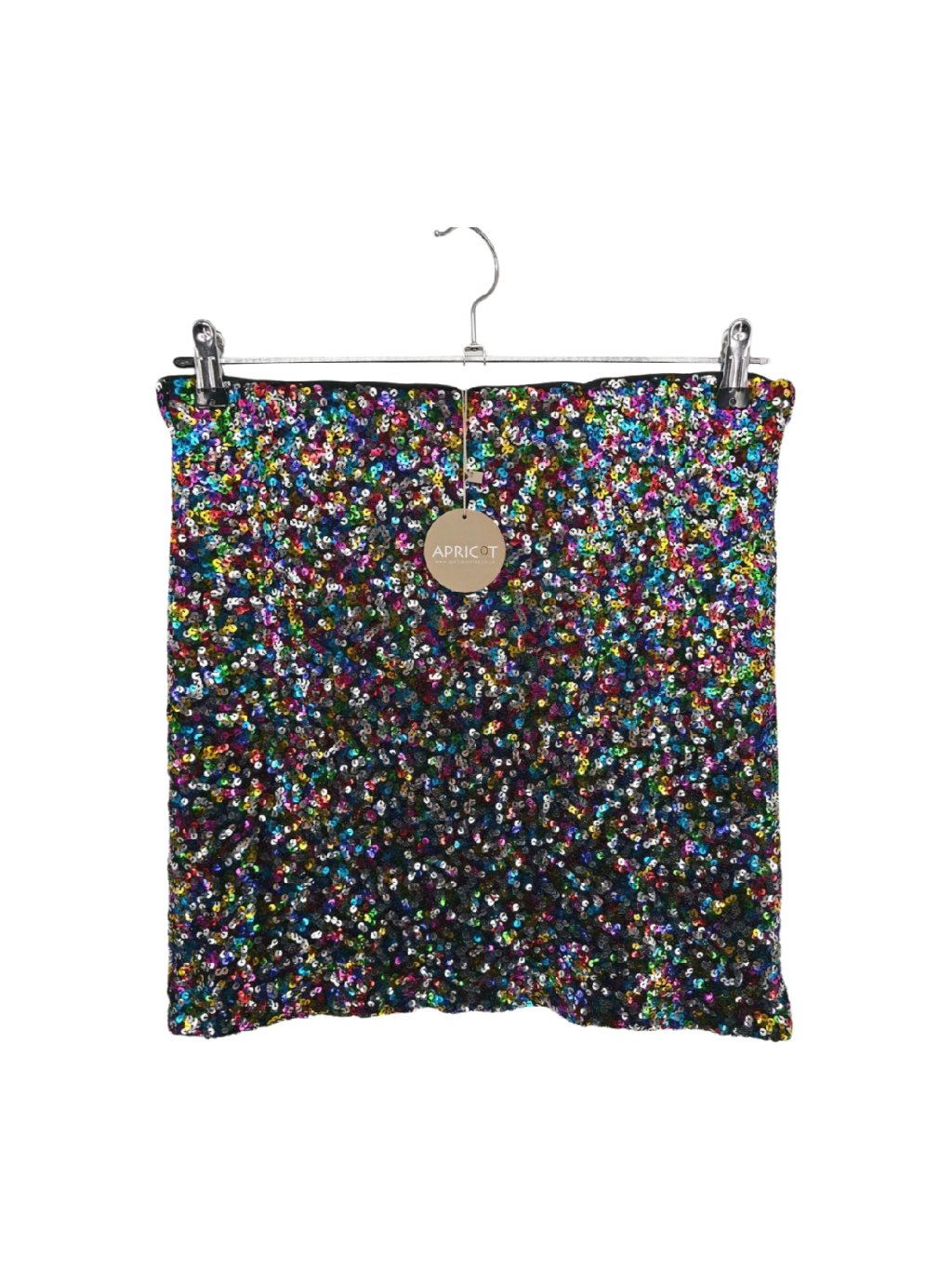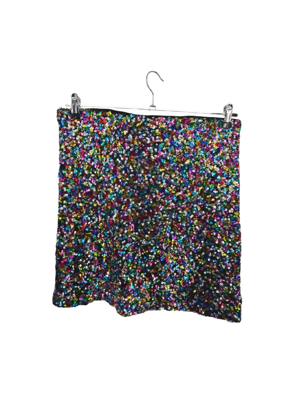 vel. UK 10 EUR 36 - pevná sukně s barevnými nitkami s růžovou podšívkou , zip vzadu, PC 50 eur
