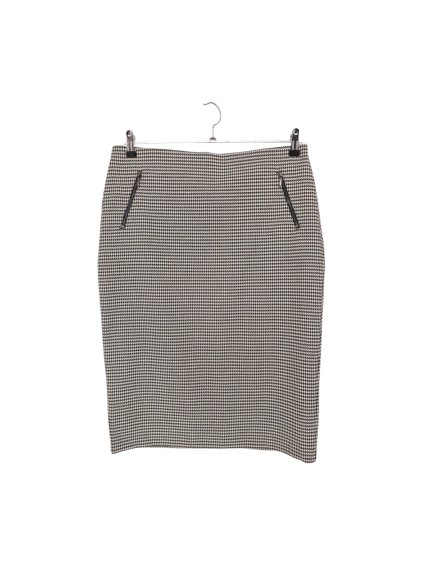 obepnuté hnědočerné šaty se zipem na zádech, velikost uvedena 14, ale jsou menší