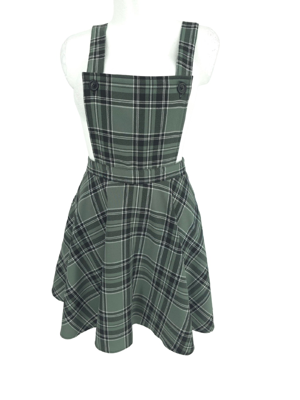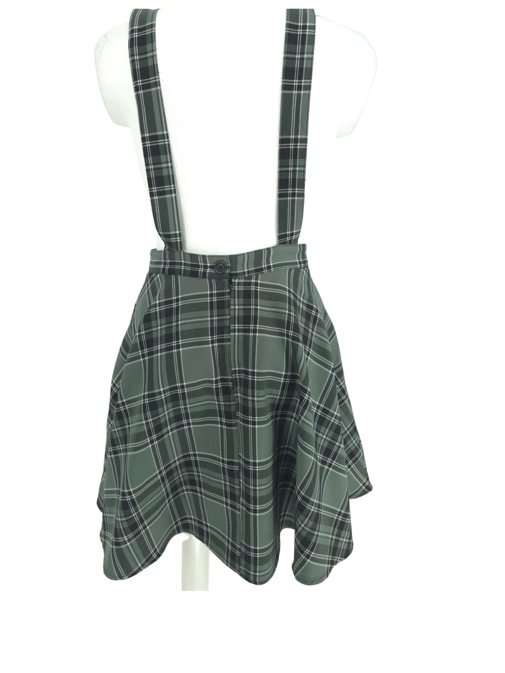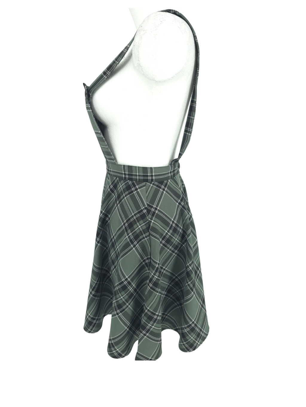 vel. M - UK 12 EUR 40 - pěkná kostkovaná sukně v rockovém či gothic stylu , ramínka mají tři knoflíky - možnost různé délky , zip vzadu , nepruží