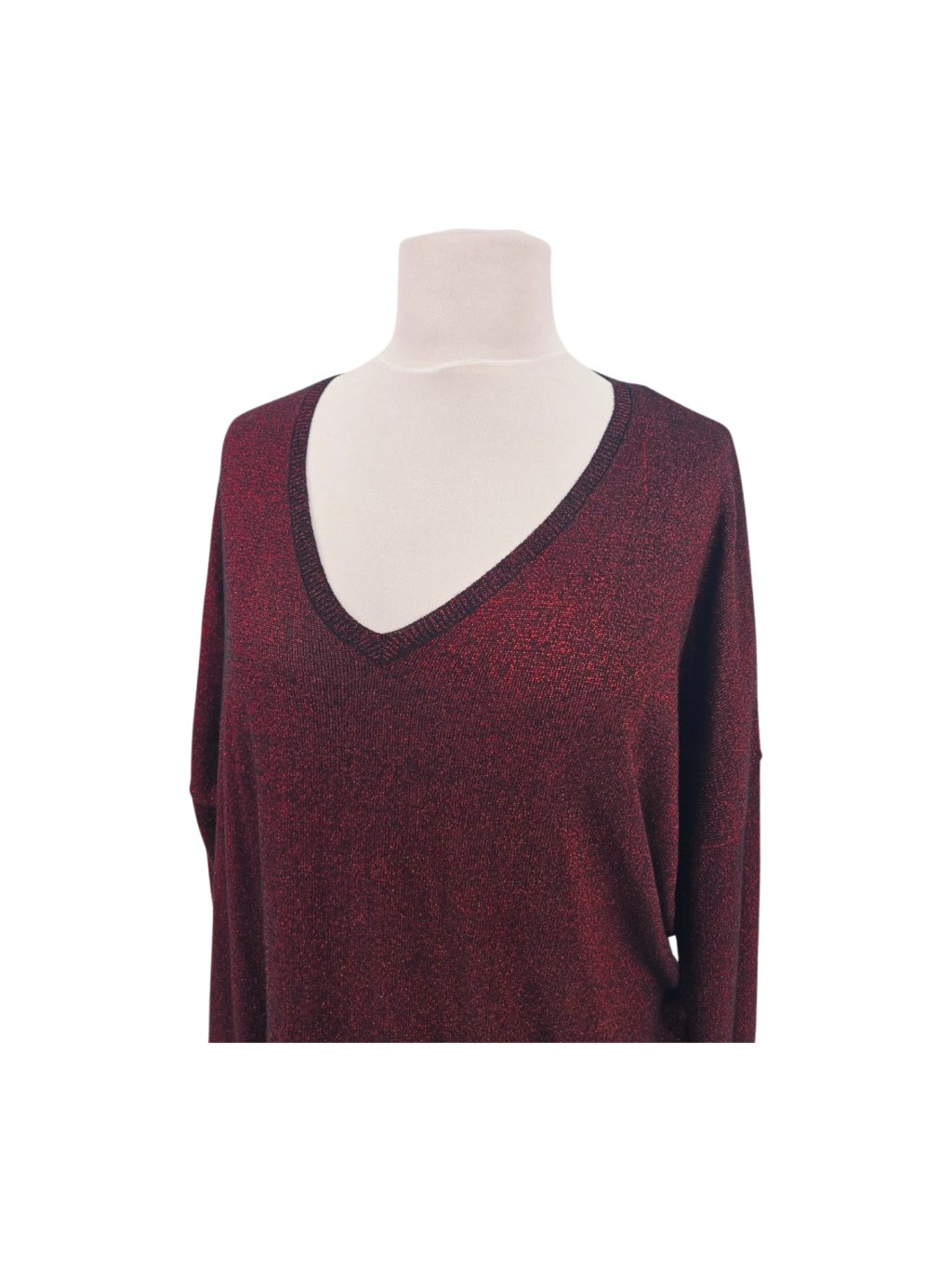 pružný měkoučký šedohnědý svetr s rozparky po stranách, volnější střih