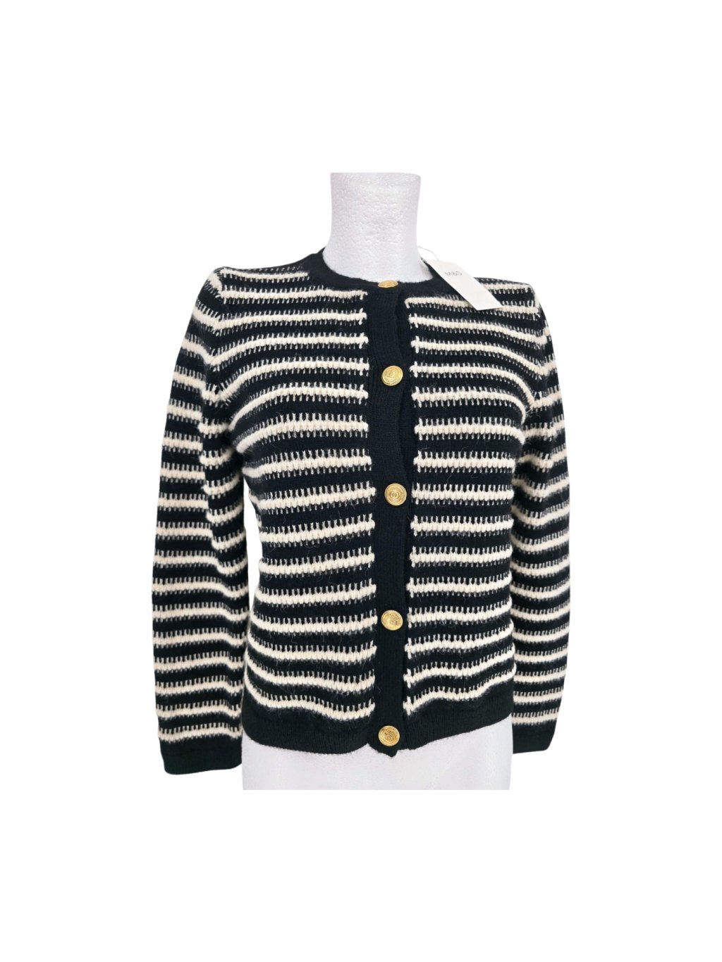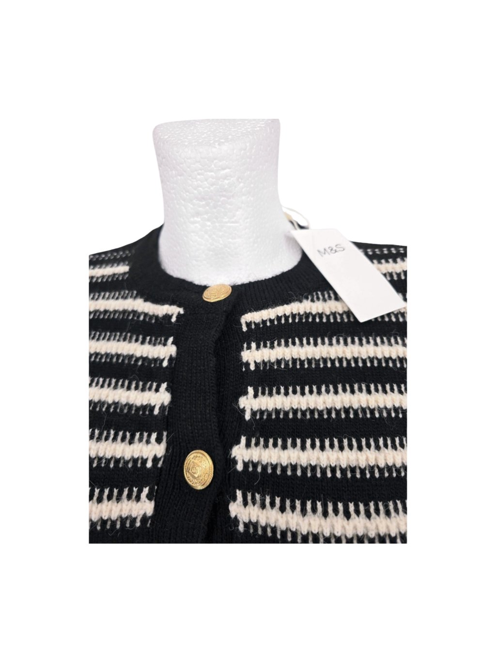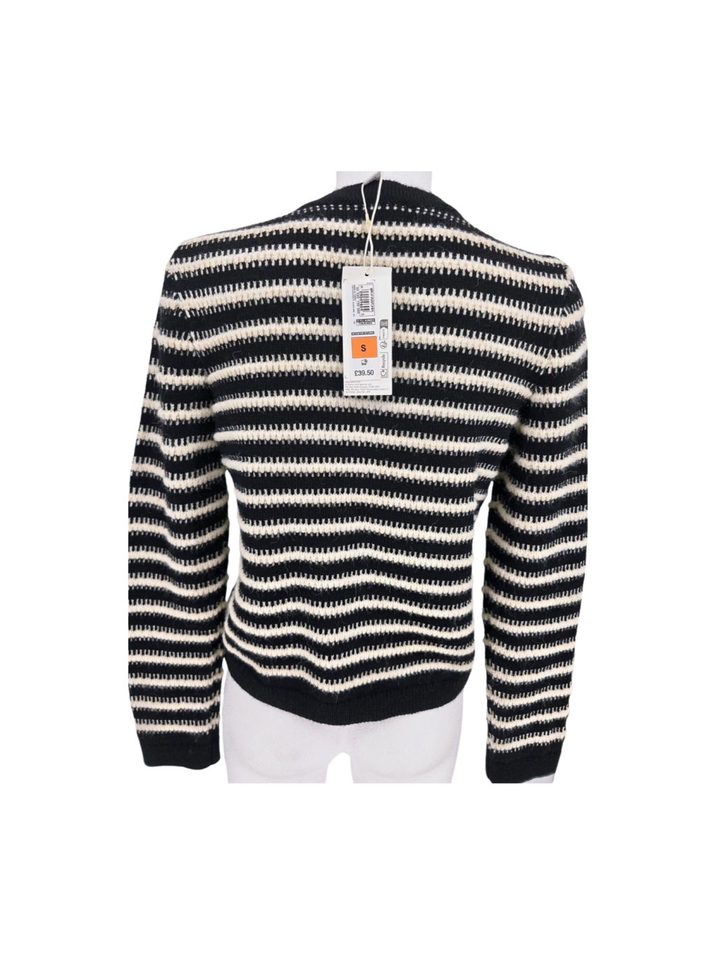 vel. UK 8 EUR 36 - kratší hodně pružný svetr , světlé pruhy protkané zlatou nitkou