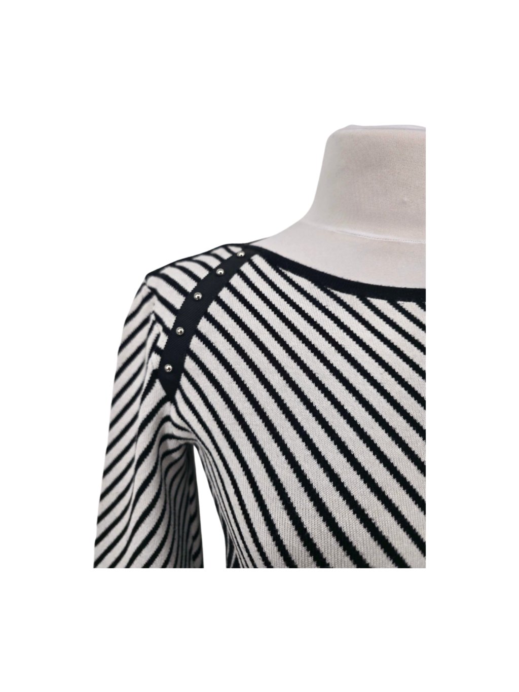 pružný příjemný svetřík na patent se zajímavou vsadkou na zádech
