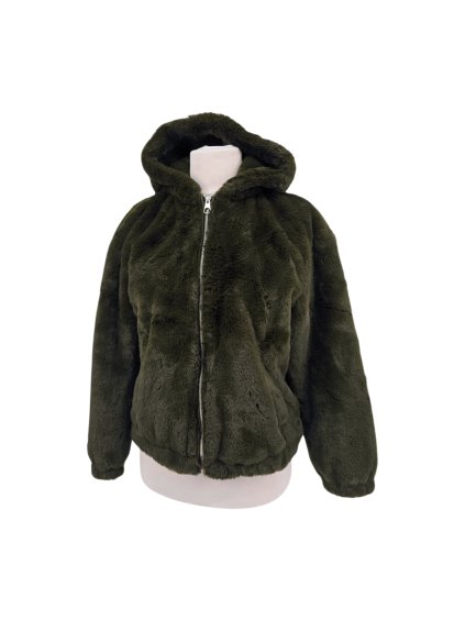 krásný zelený umělý kožíšek , heboučký s kapucou a kapsami