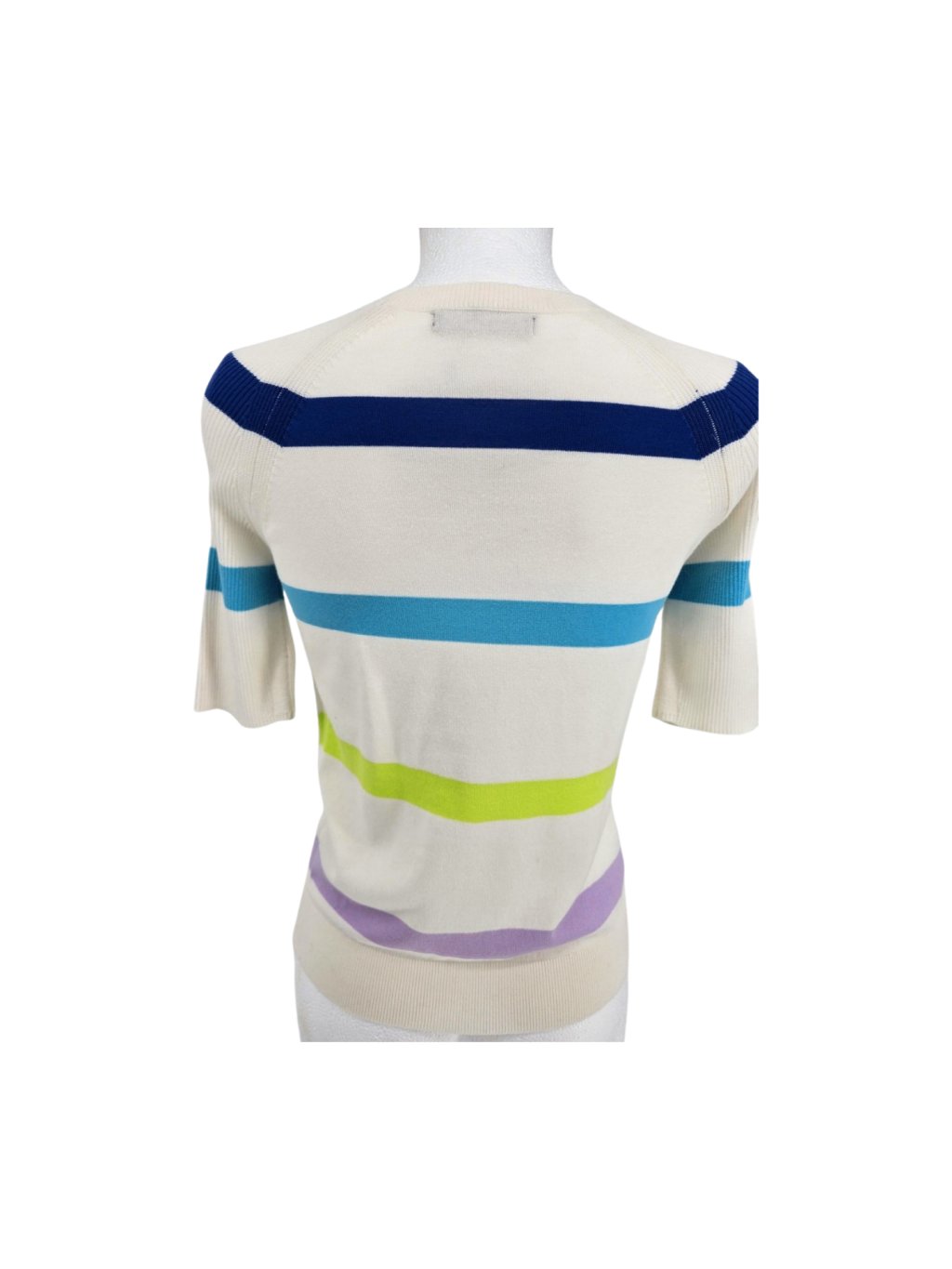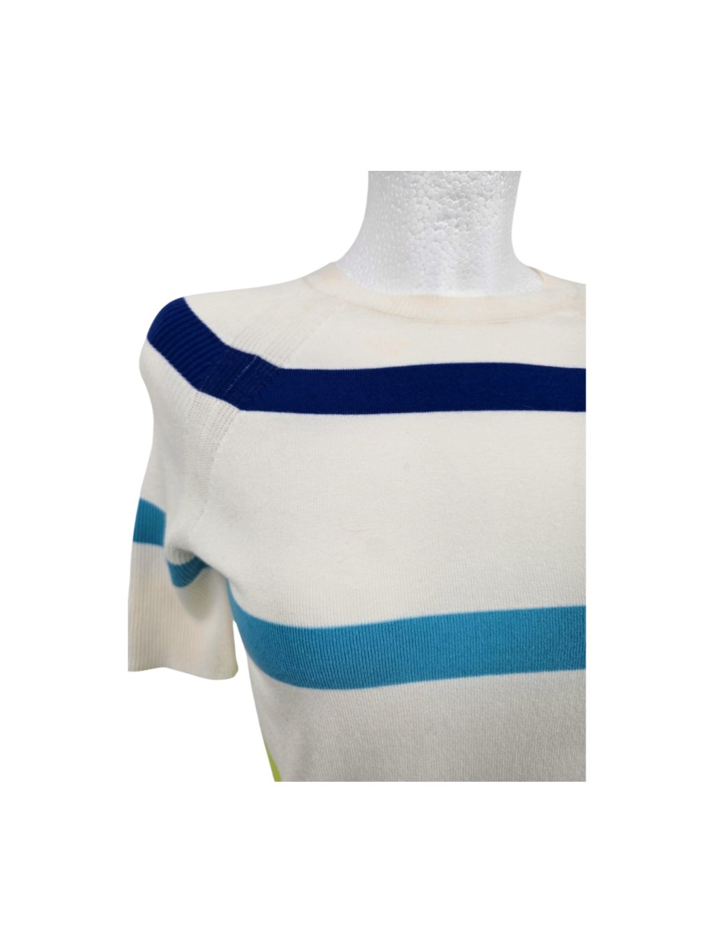 vel. UK 8 EUR 36 - kratší hodně pružný svetr , světlé pruhy protkané zlatou nitkou