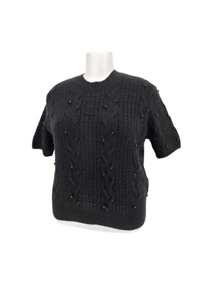 černý svetřík s krátkým rukávem a našitými černými plastovými korálky