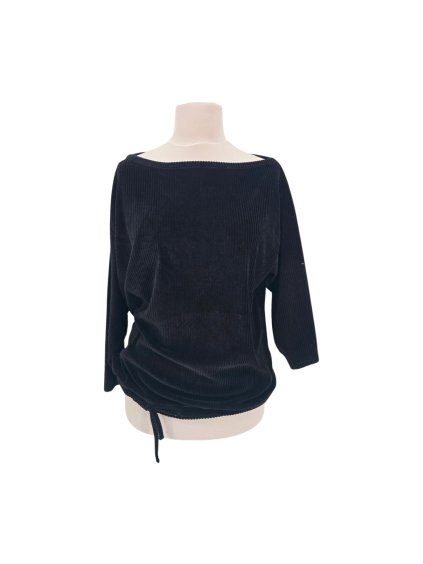 pružná mikina se sametovým povrchem v manšestrovém vzhledu, dole stahování na šňůrku, široký výstřih