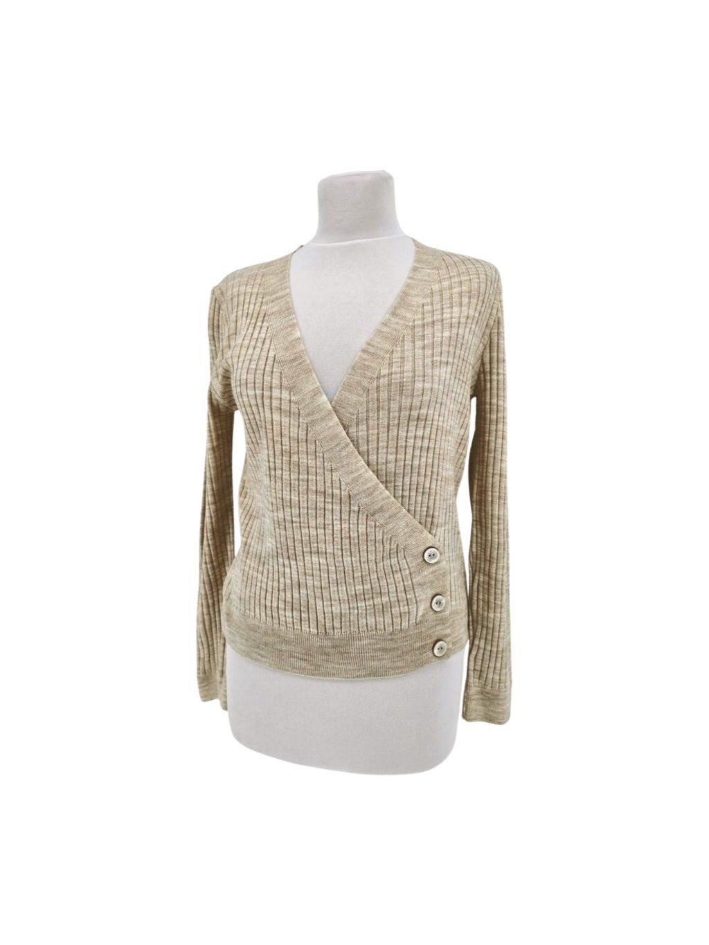 vel. S - 38 - zavinovací svetr v přírodních tónech, pružný , nekouše