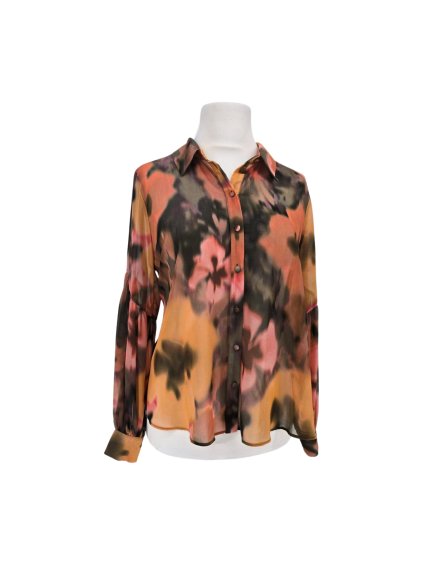 zajímavá volnější košile v duhových tónech černé oranžové a fialové barvy