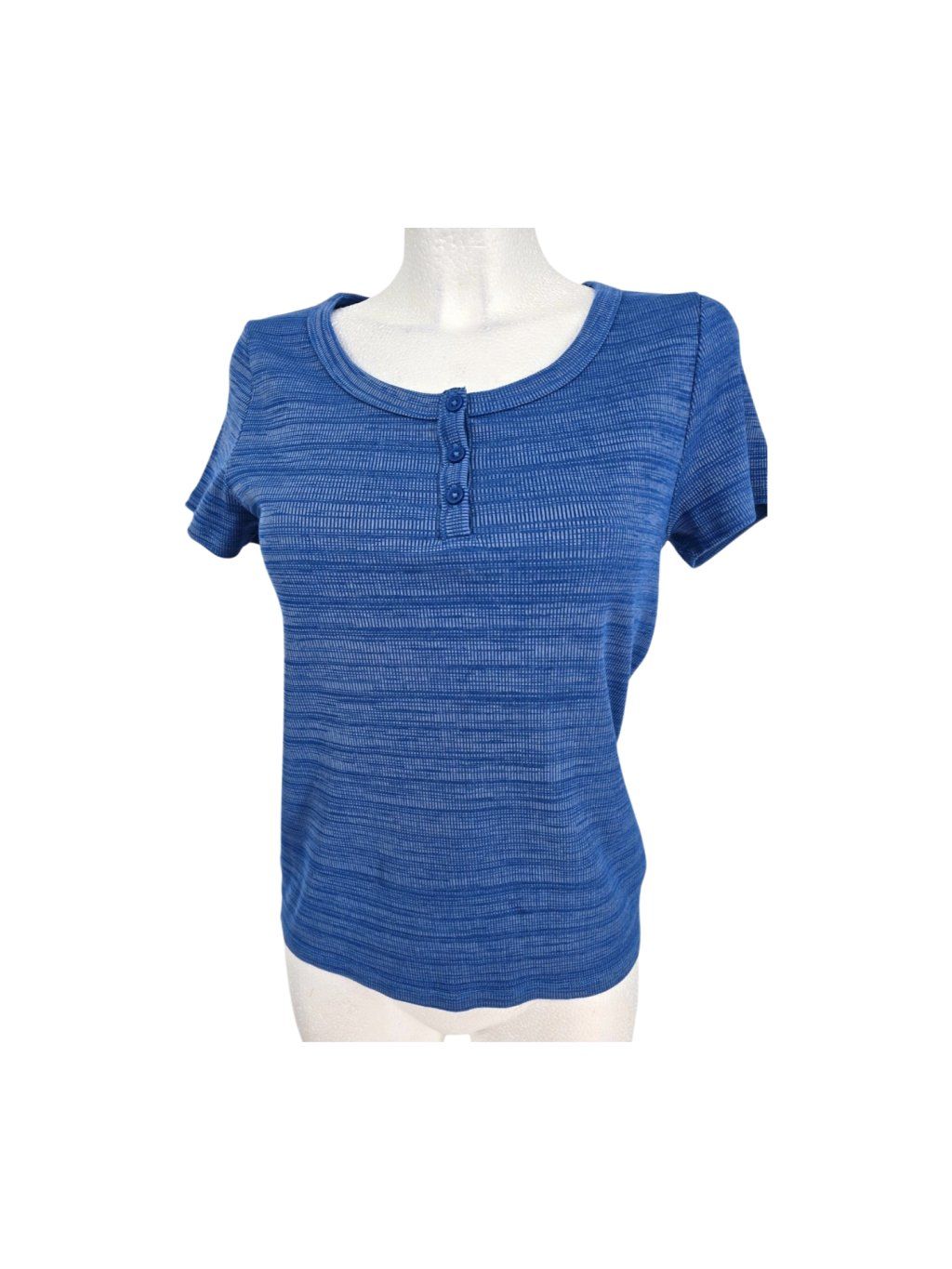 vel. UK 12 EUR 40 - pružné tričko z bavlněné smesi v modré melírované barvě