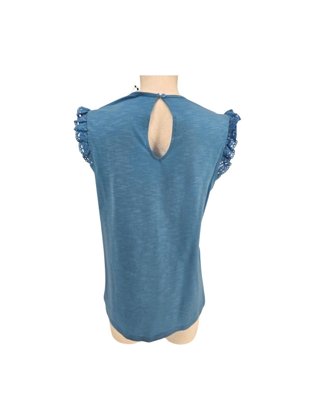 vel. UK 12 EUR 40 - příjemný bavlněný topík / tričko doplněné háčkovanou krajkou , barva o něco světlejší než foto