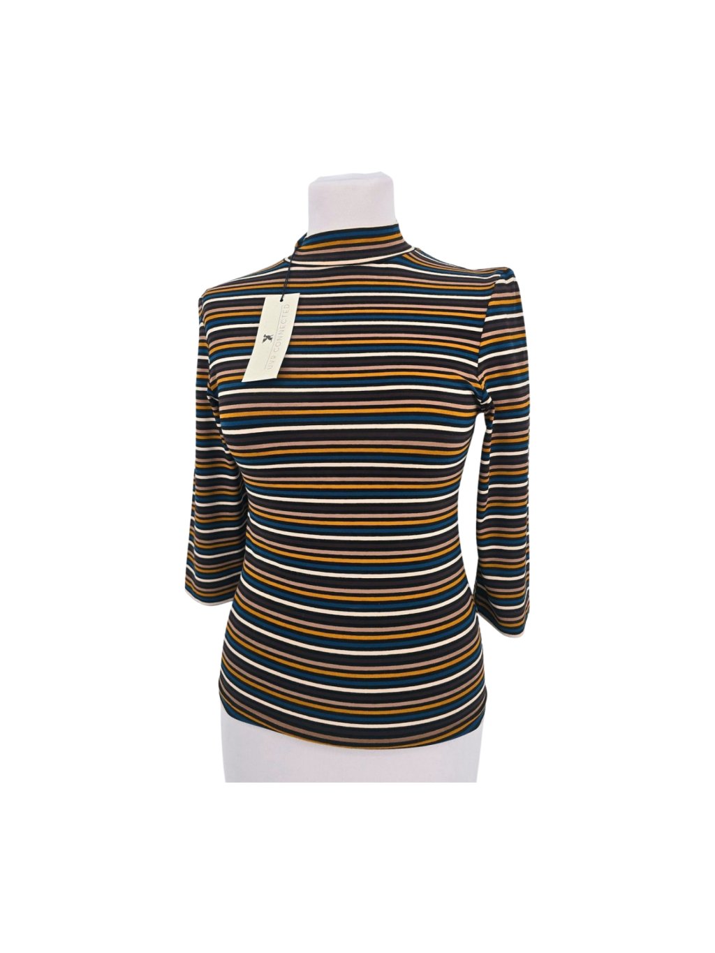 pružný top s žabičkami na prsou a rozšířenou dolní částí