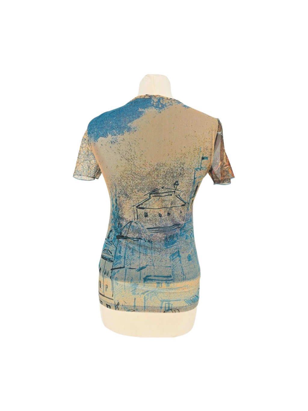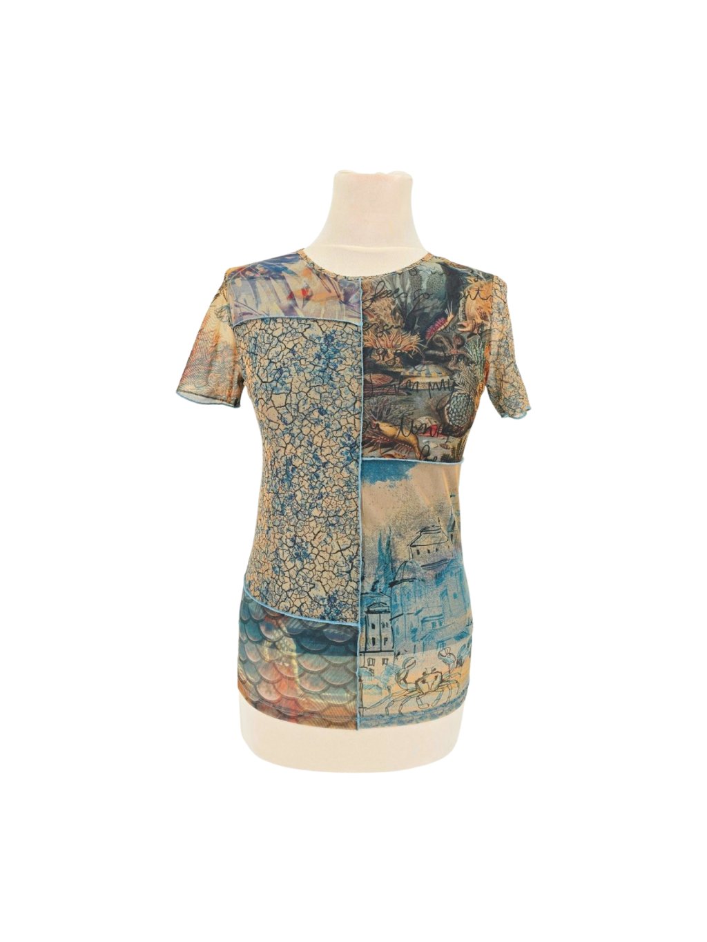 pružný top s žabičkami na prsou a rozšířenou dolní částí